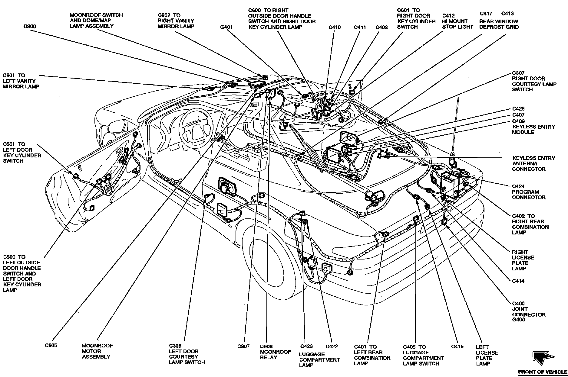 The Keyless Entry Module is located in front of RH quarter panel, behind quarter trim.