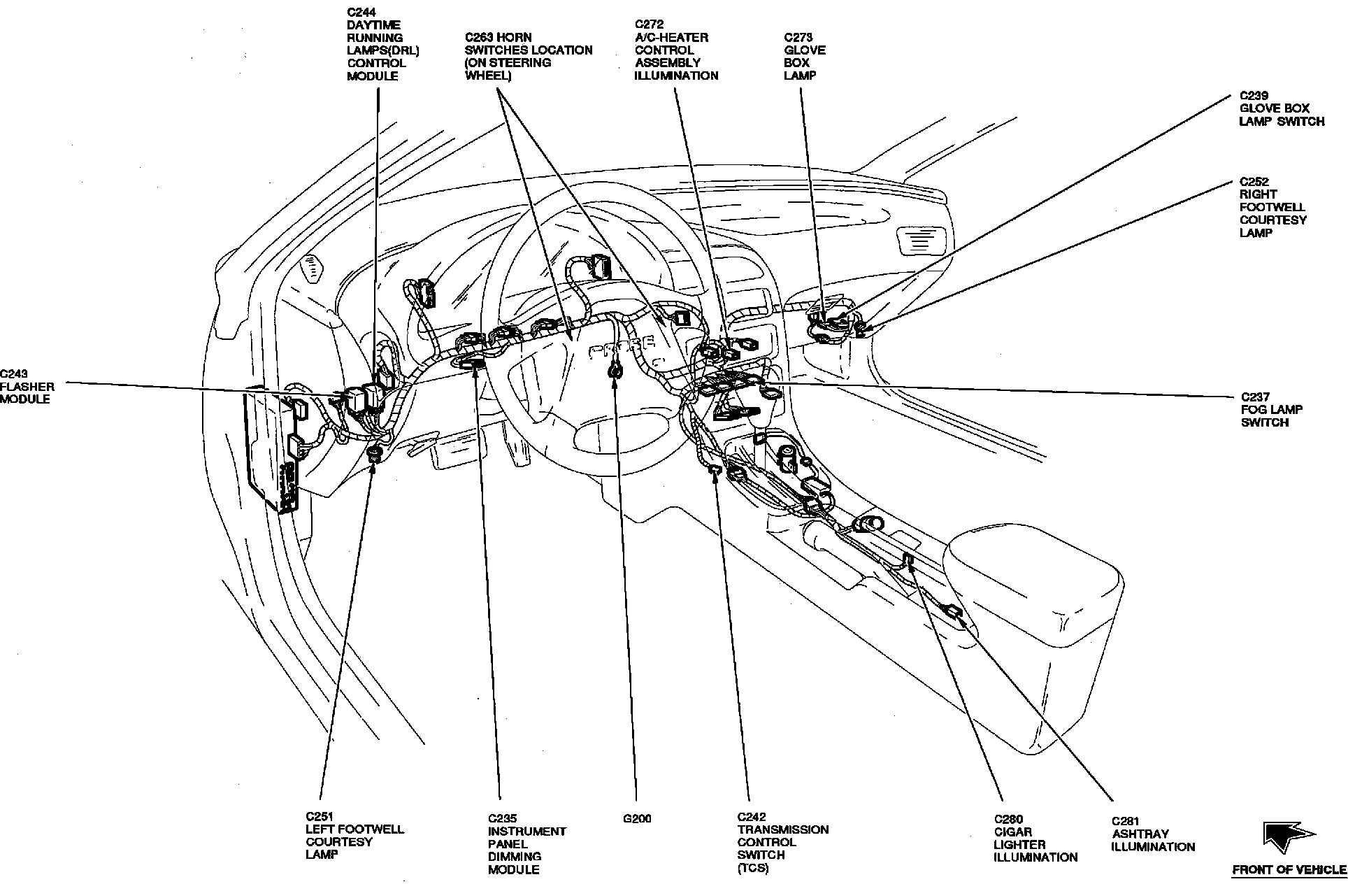 The Instrument Panel Dimming Relay is located on LH side of I/P, left of steering column.