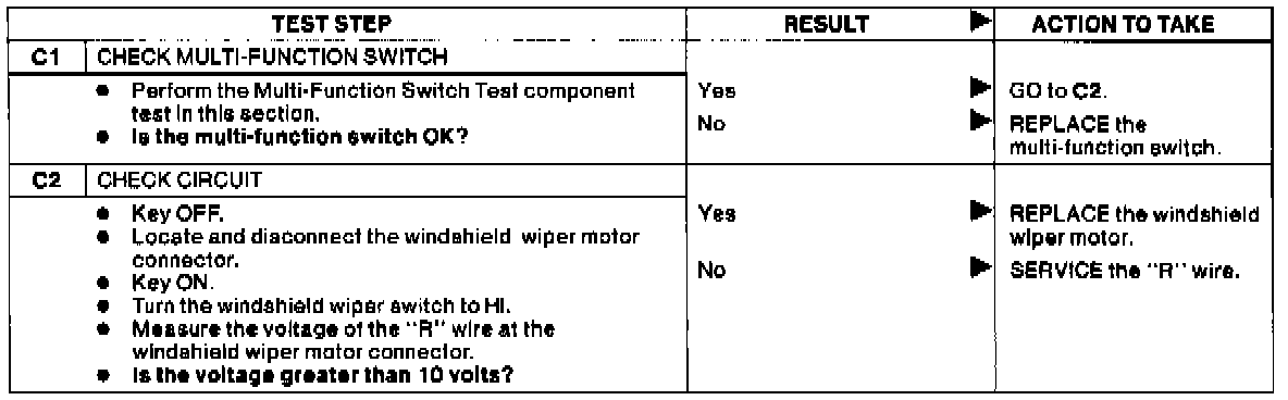 Test C: Windsheild Wipers Inoperative At High Speed.: