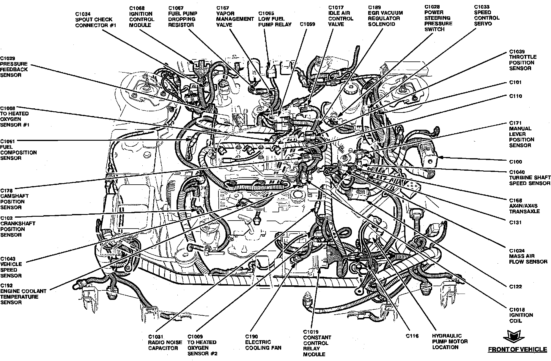 , (C1043), is located at the lower LH rear of engine, on the transaxle.