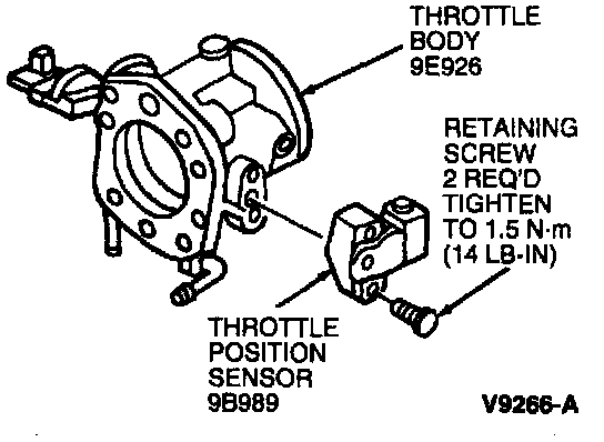 2. Secure TP sensor to throttle body assembly with two retaining screws. Tighten to 1.5 Nm (14 in lb).