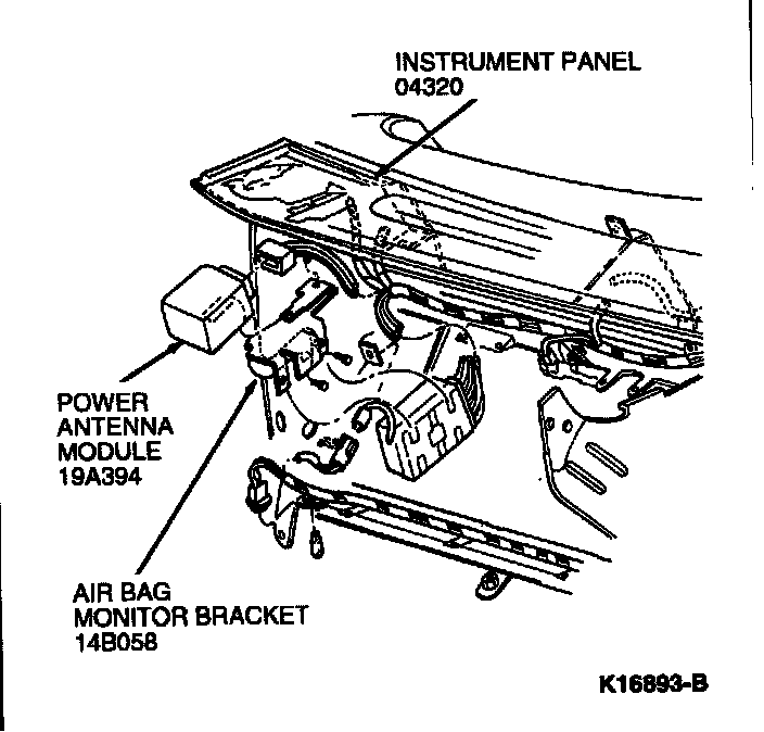 2. Remove power antenna module from air bag monitor bracket.