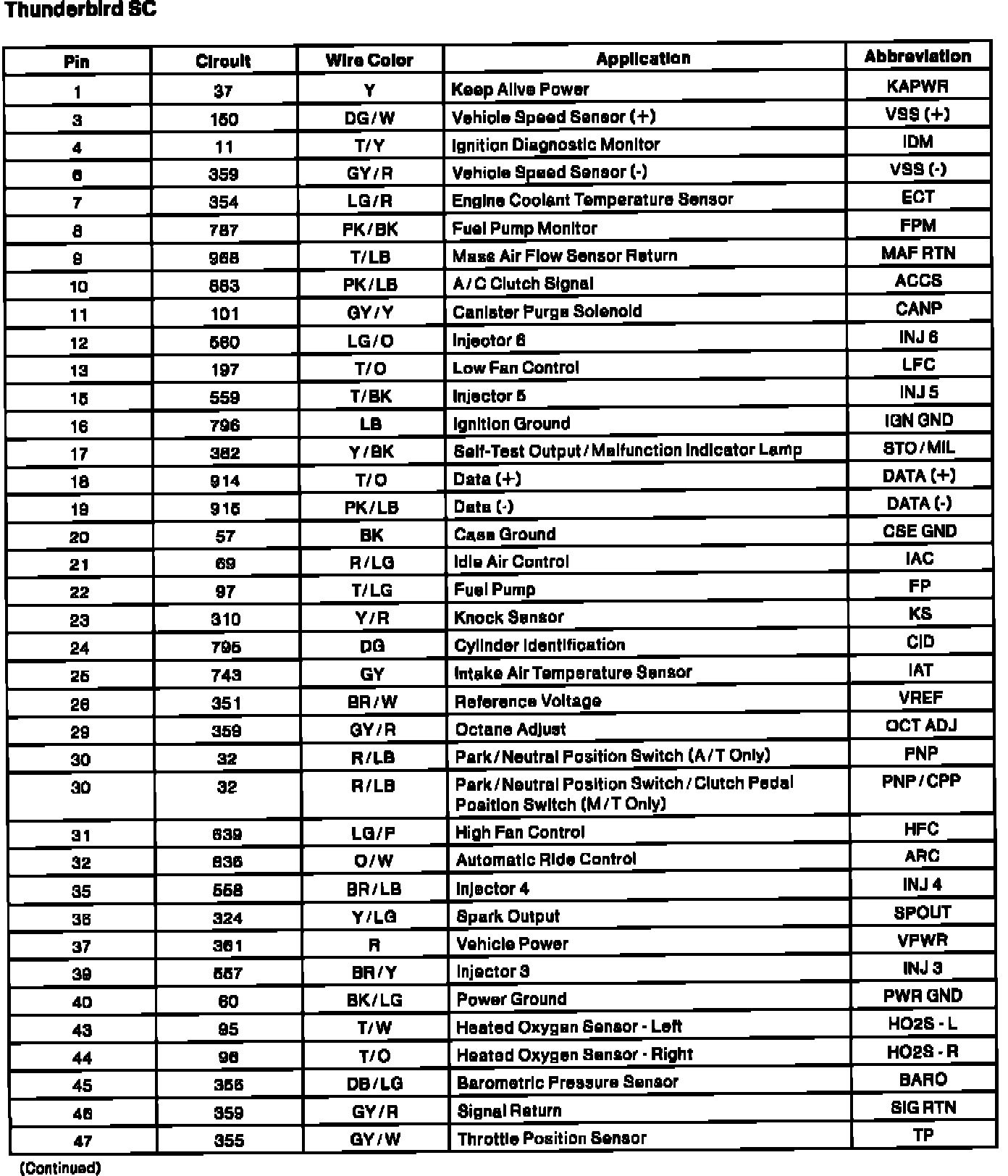 Powertrain Control Module (PCM) Connector Pin Usage: