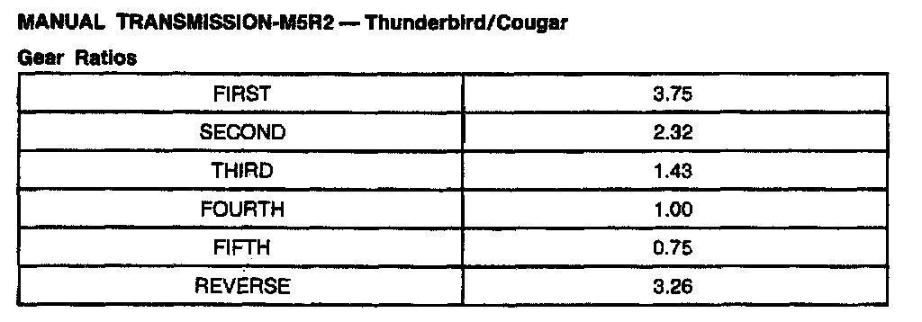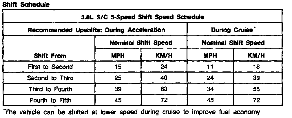 M5R2 5-spd M/T, Shift Speeds (3.8L SC):