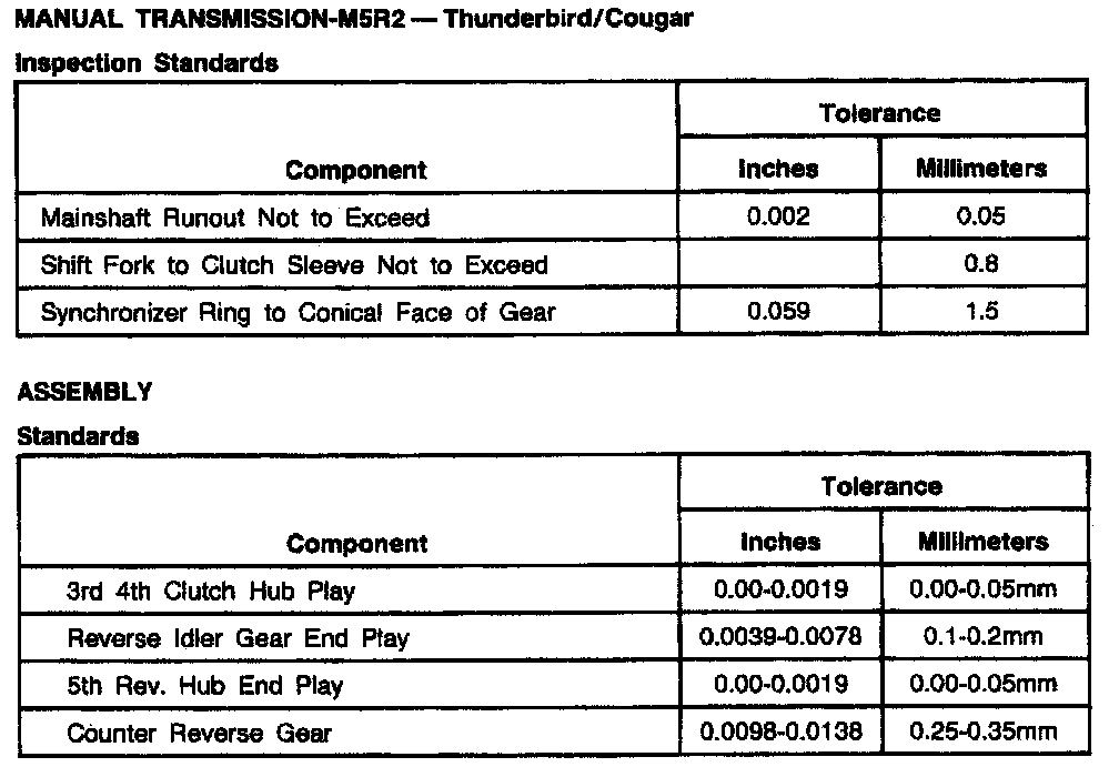 M5R2 5-spd M/T, Mainshaft Runout/Standards: