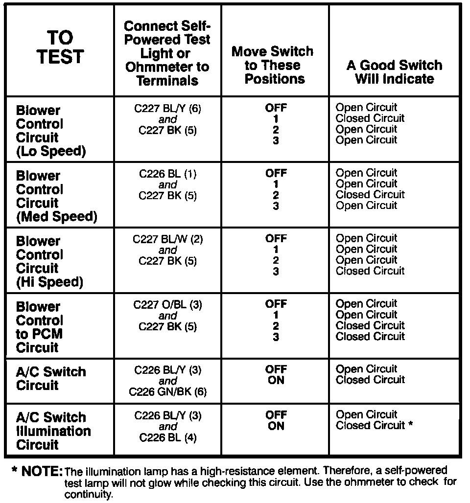 Heater-A/C Control Switch - Component Testing Switch: