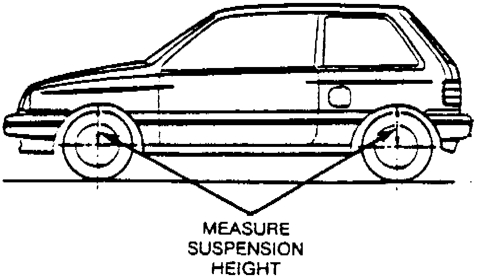 NOTE: Uneven tire wear will increase the variance in the measurements and should be taken into consideration. If variance is more than 0.4 in, check springs and suspension components for wear and damage.