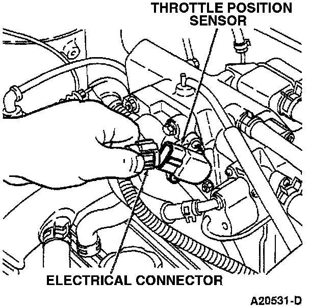 1. Remove the Throttle Position (TP) sensor electrical connector.