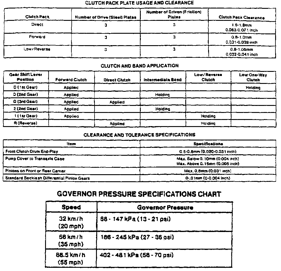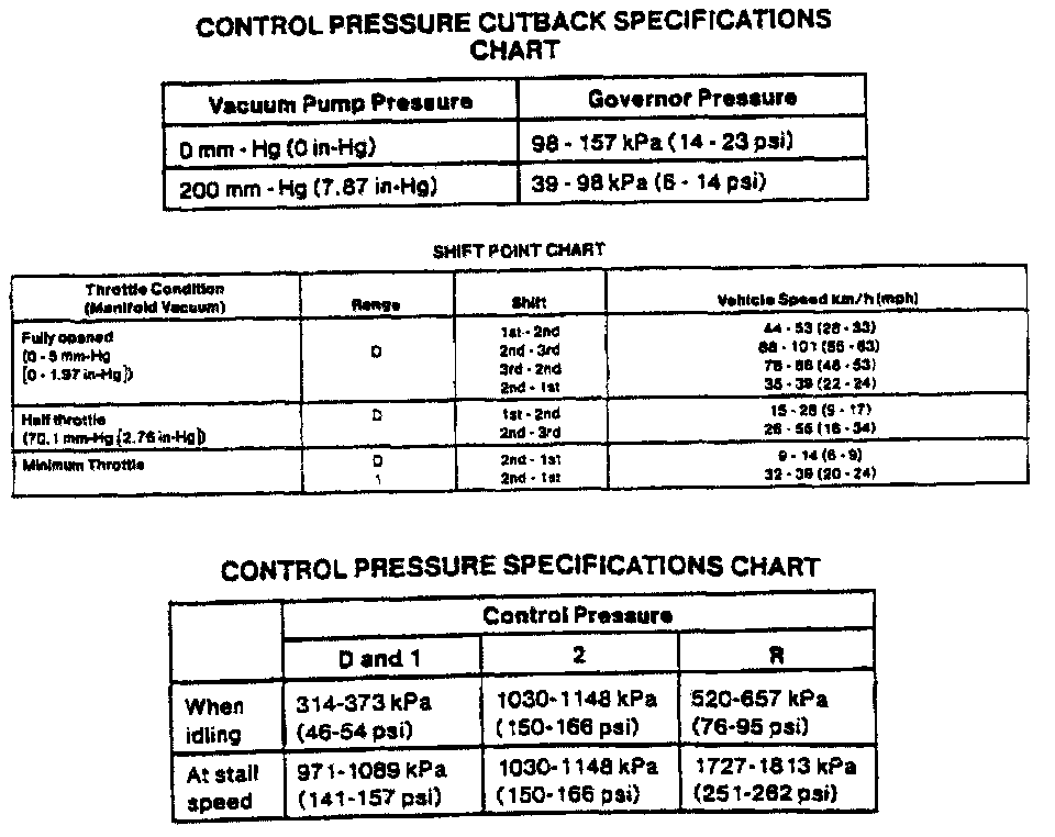 ATX 3-spd A/T, Control Pressure Chart:
