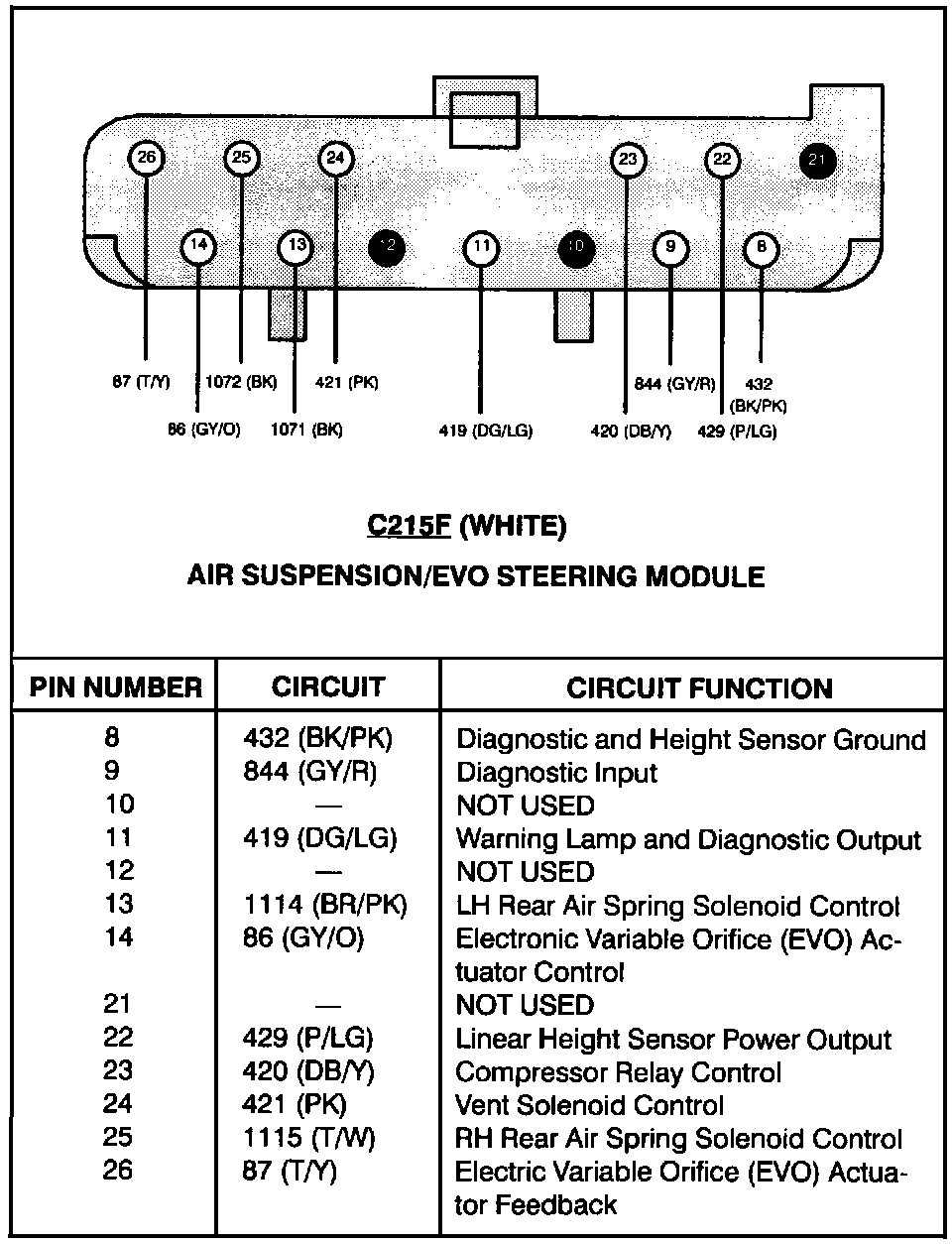 Air Suspension/Electronic Variable Orifice Steering Module (C215F):