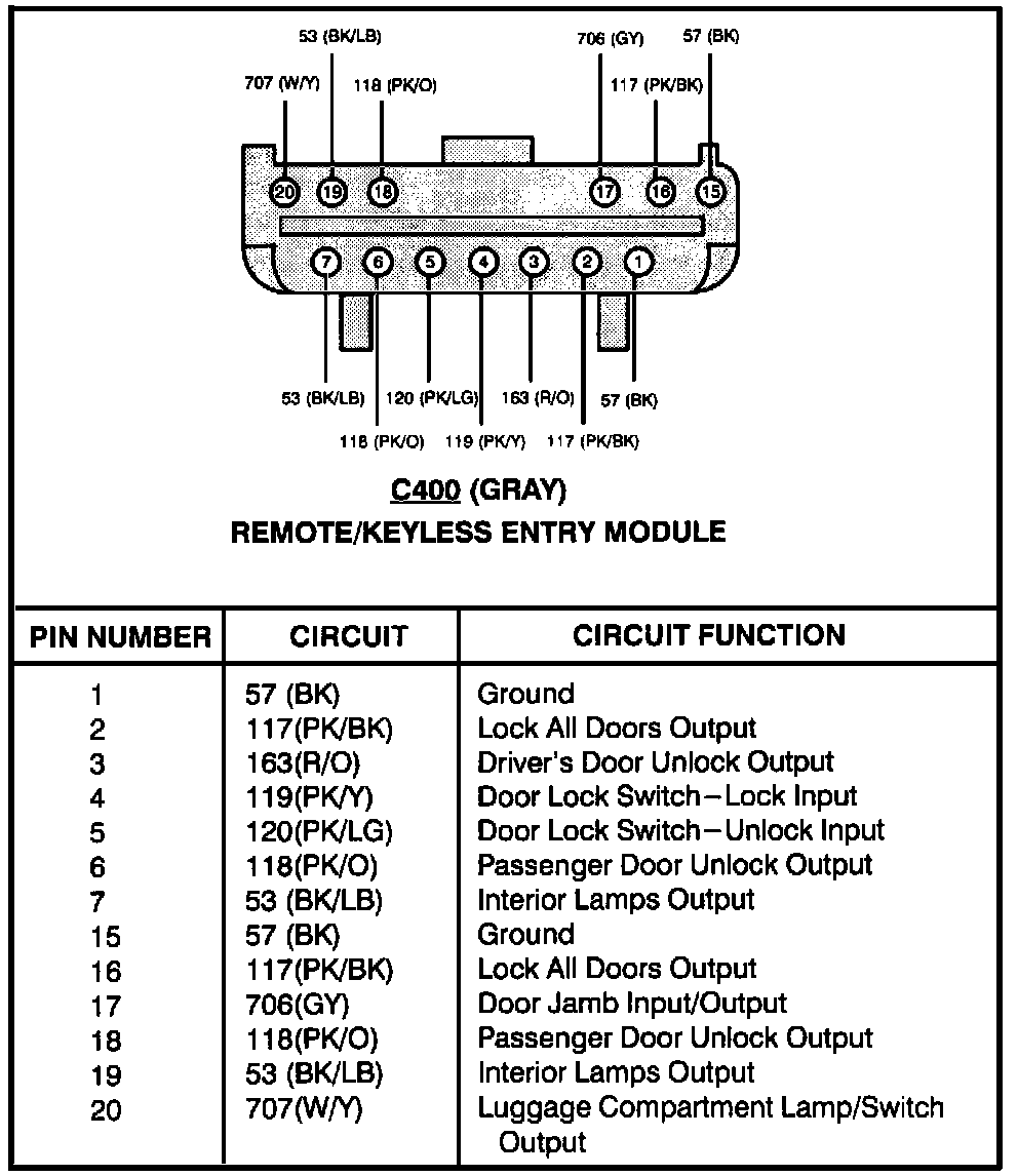 Remote/Keyless Entry Module (C400):