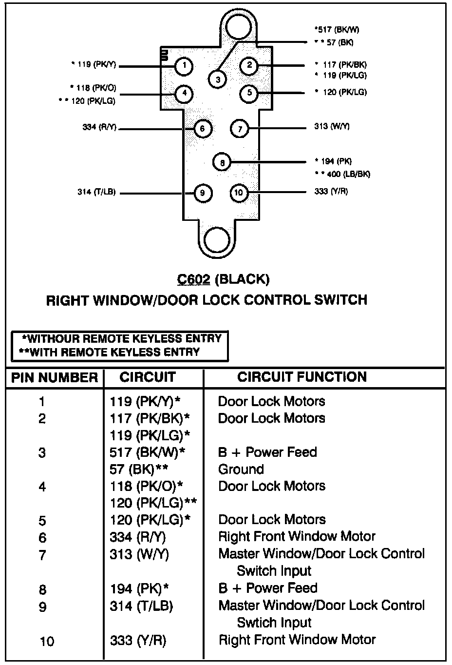 Right Window/Door Lock Control Switch: