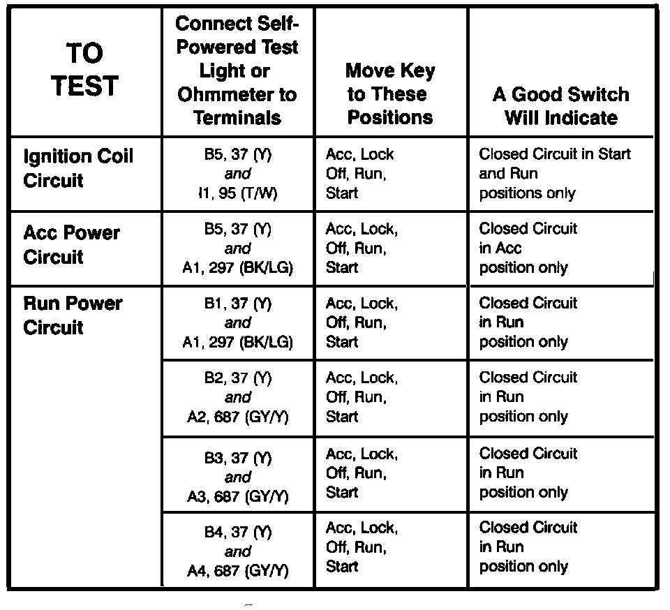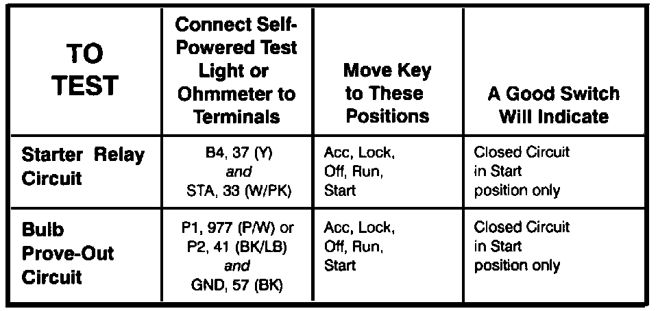 Ignition Switch - Component Testing Procedure (Part 2 Of 2):