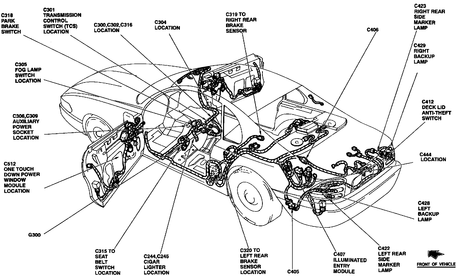 The One Touch Down Power Window Module is located at the lower rear of the LH door.