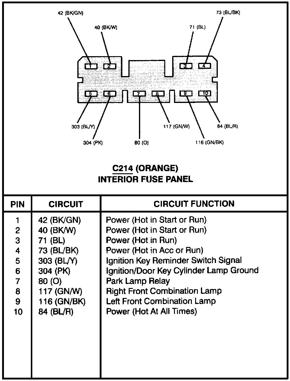 Interior Fuse Panel (C214):
