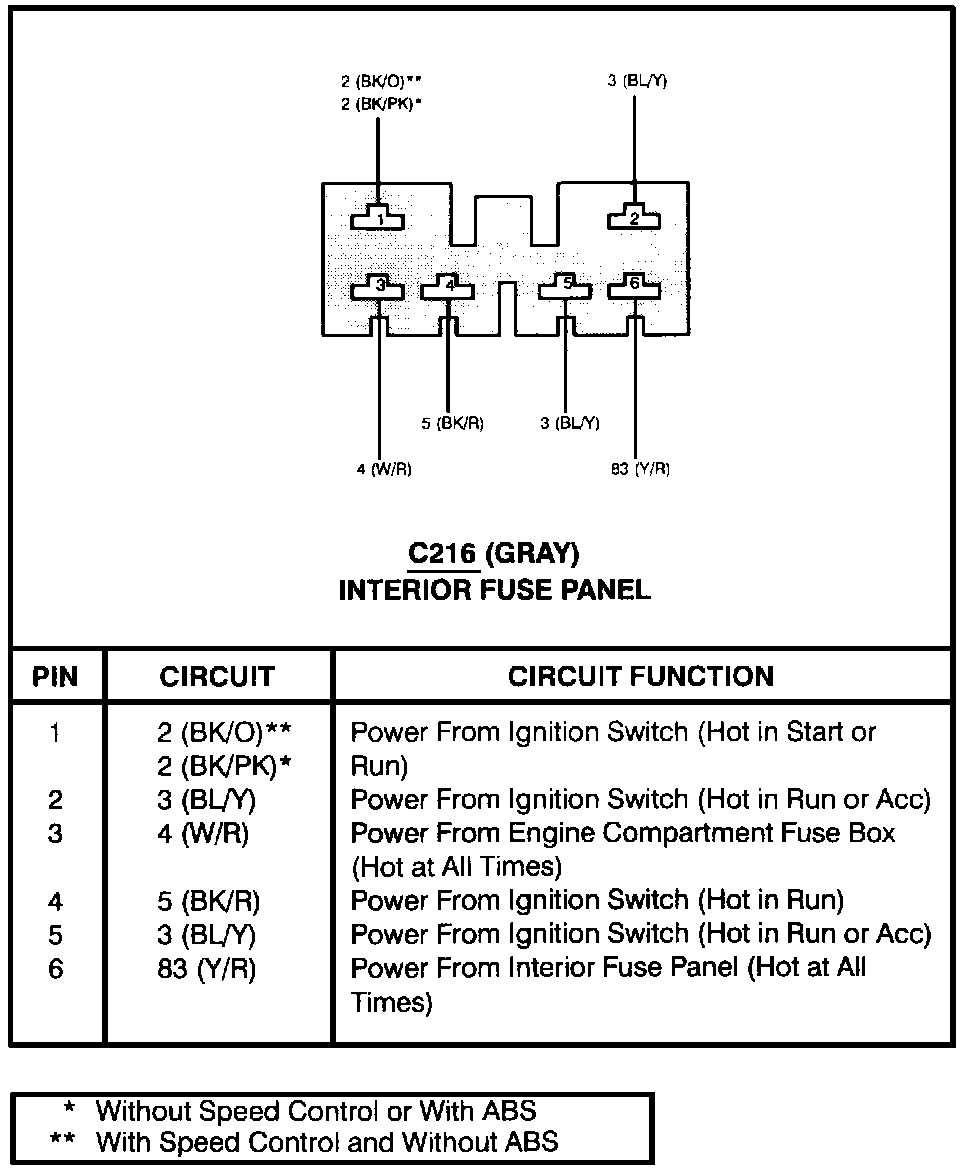 Interior Fuse Panel (C216):