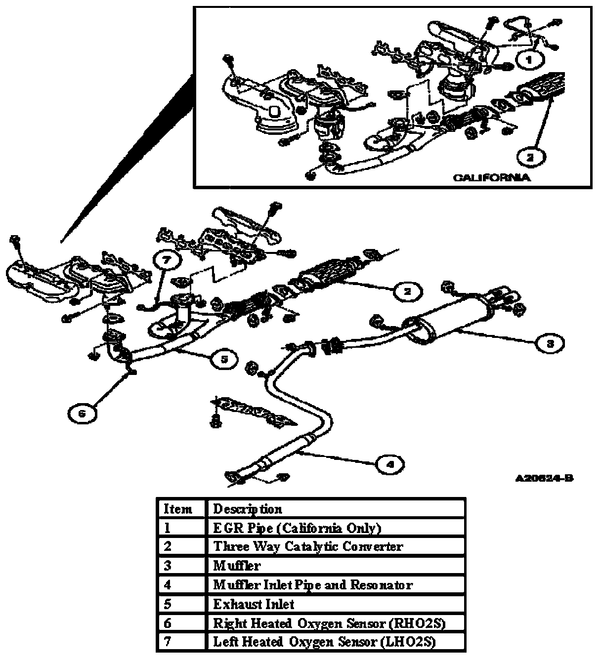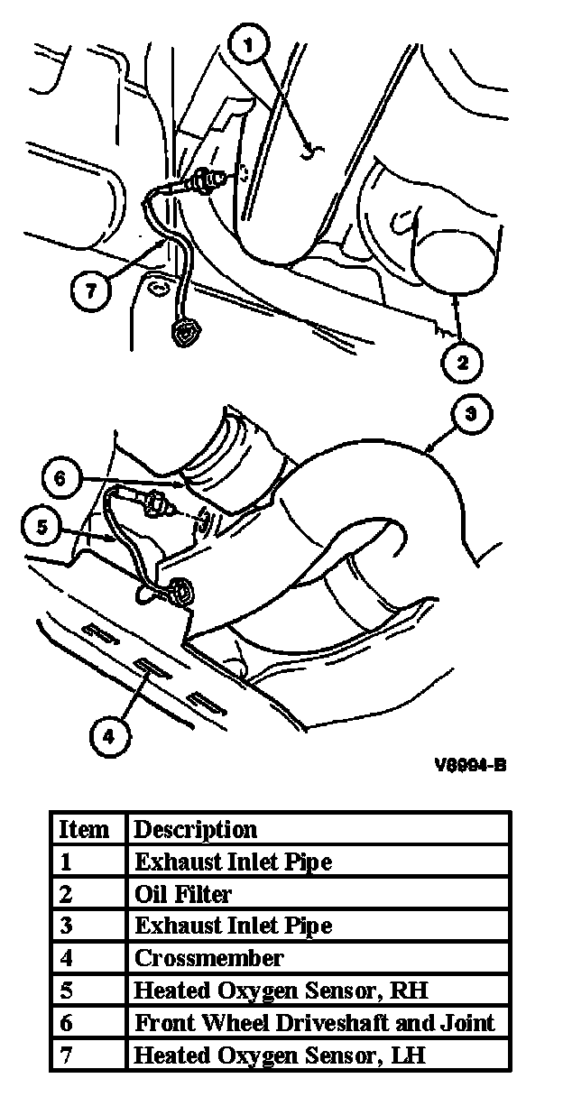 The two Heated Oxygen Sensors (HO2S) are mounted in both of the exhaust inlet pipes, just below the exhaust manifolds.