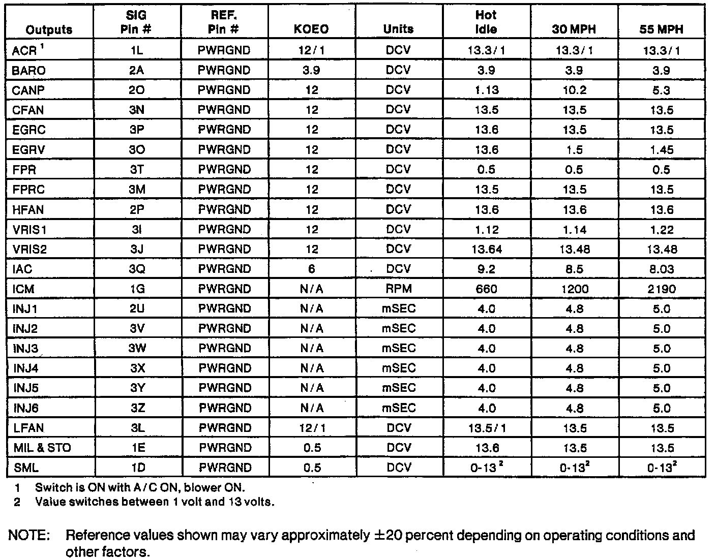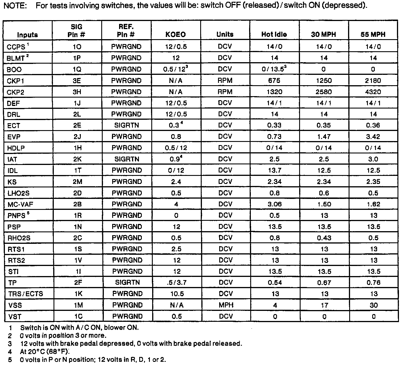 Normal Scan Data Values (Includes PID's)