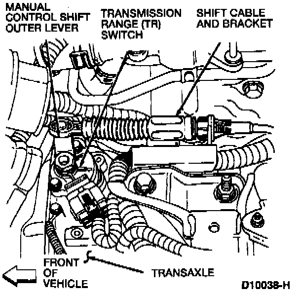 8. Install the manual control shift outer lever, washer, and the manual control lever nut. Tighten the manual control lever nut to 32-46 Nm (24-33 lb ft). Tighten the TR switch bolts to 8-10 Nm (71-88 lb in).