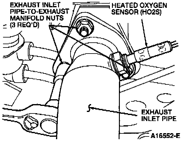 8. Remove the three front exhaust manifold-to-exhaust inlet pipe nuts.