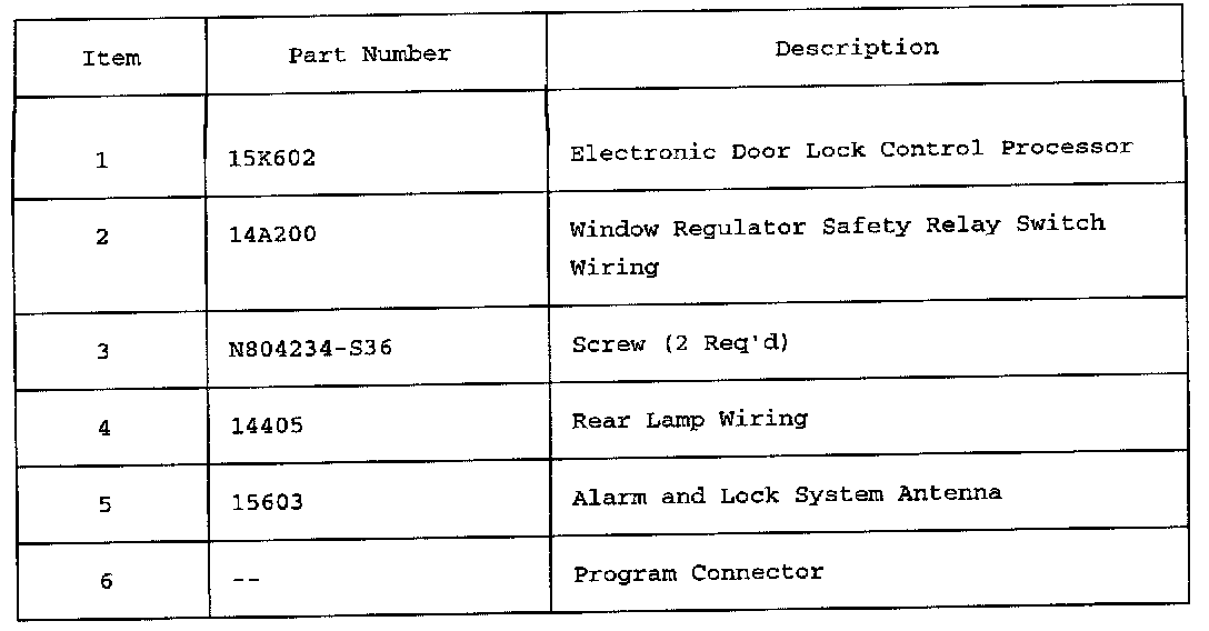 3. Disconnect three connectors and alarm and lock system antenna connector. Remove electronic door lock control processor.