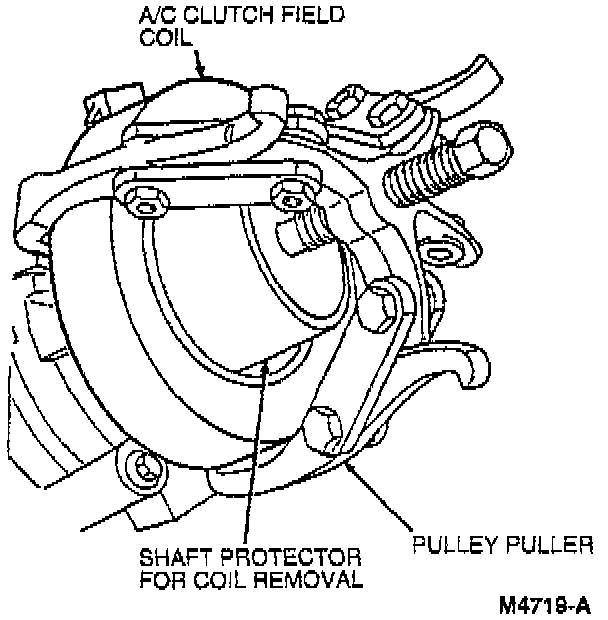 NOTE: The A/C clutch field coil is pressed on the front head of the A/C compressor. Special service tools are required to remove and install the A/C clutch field coil.