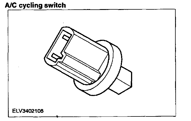 The A/C cycling switch is mounted on a Schrader valve-type fitting on the top of the suction accumulator/drier.