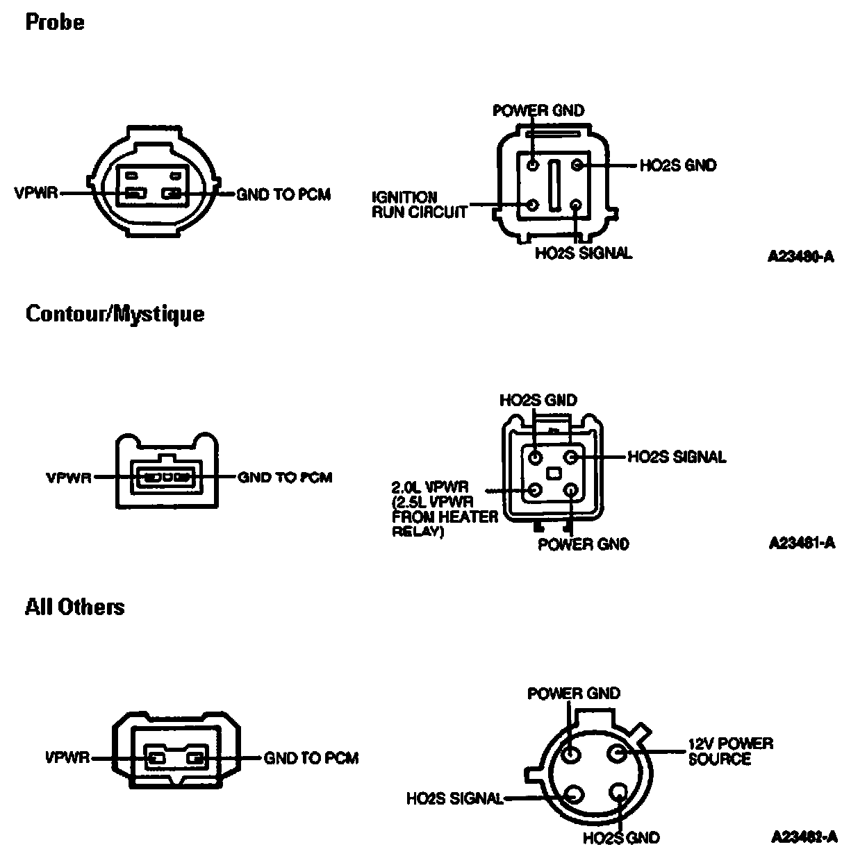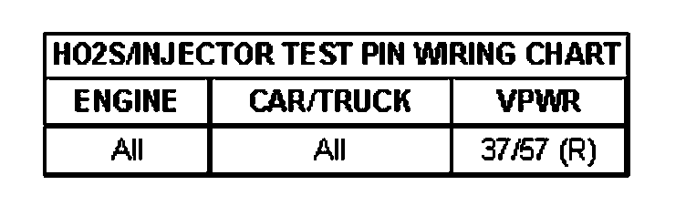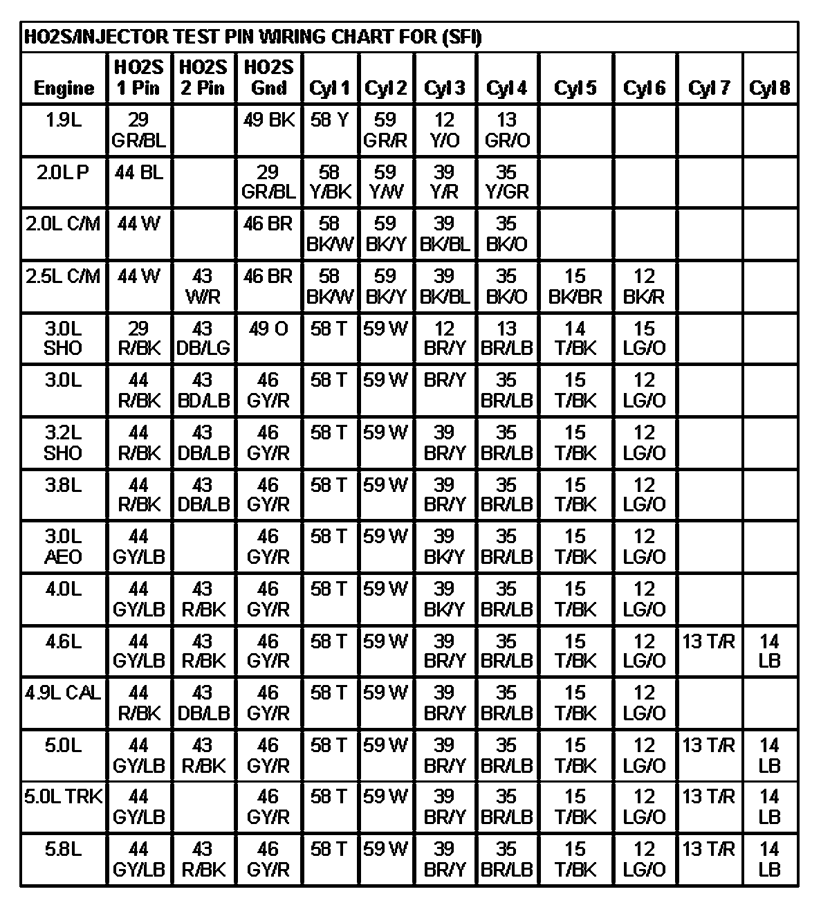 HO2S/Injector Test Pin Wiring Chart For (SFI):