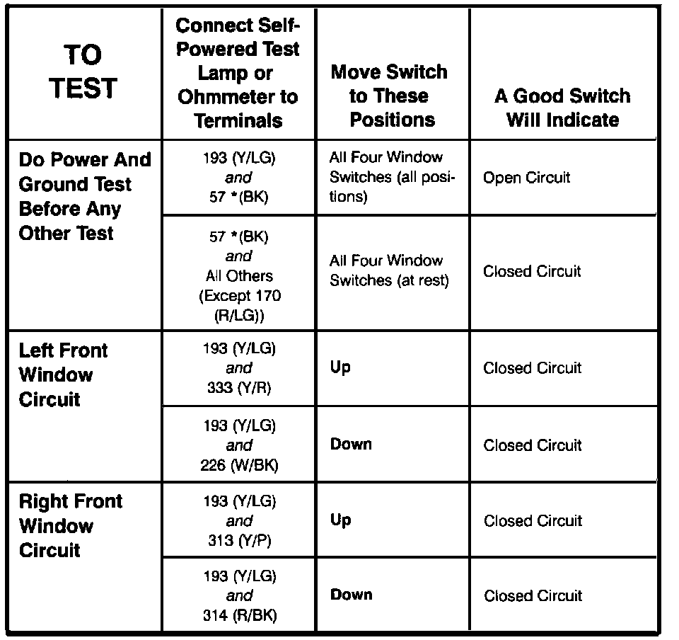 Power Window Switch: Testing and Inspection