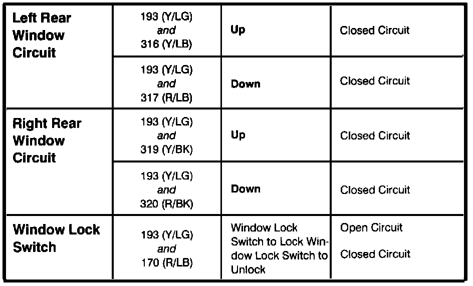 Master Window Control Switch - Component Testing Procedure (Part 2 Of 2):