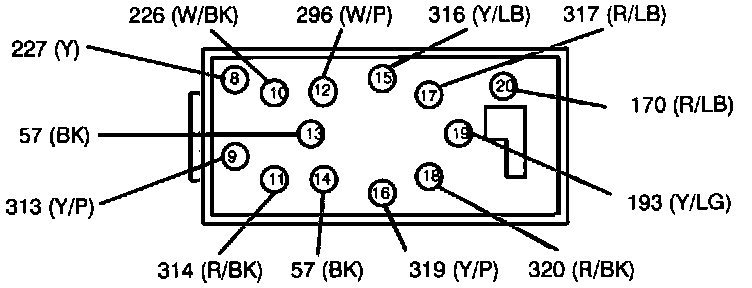 Master Window Control Switch - Terminal Locations: