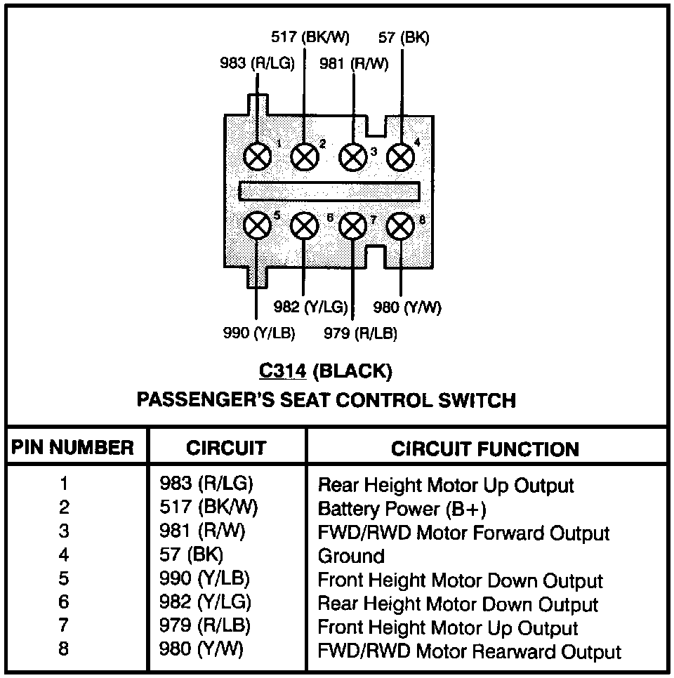Passenger's Seat Control Switch: