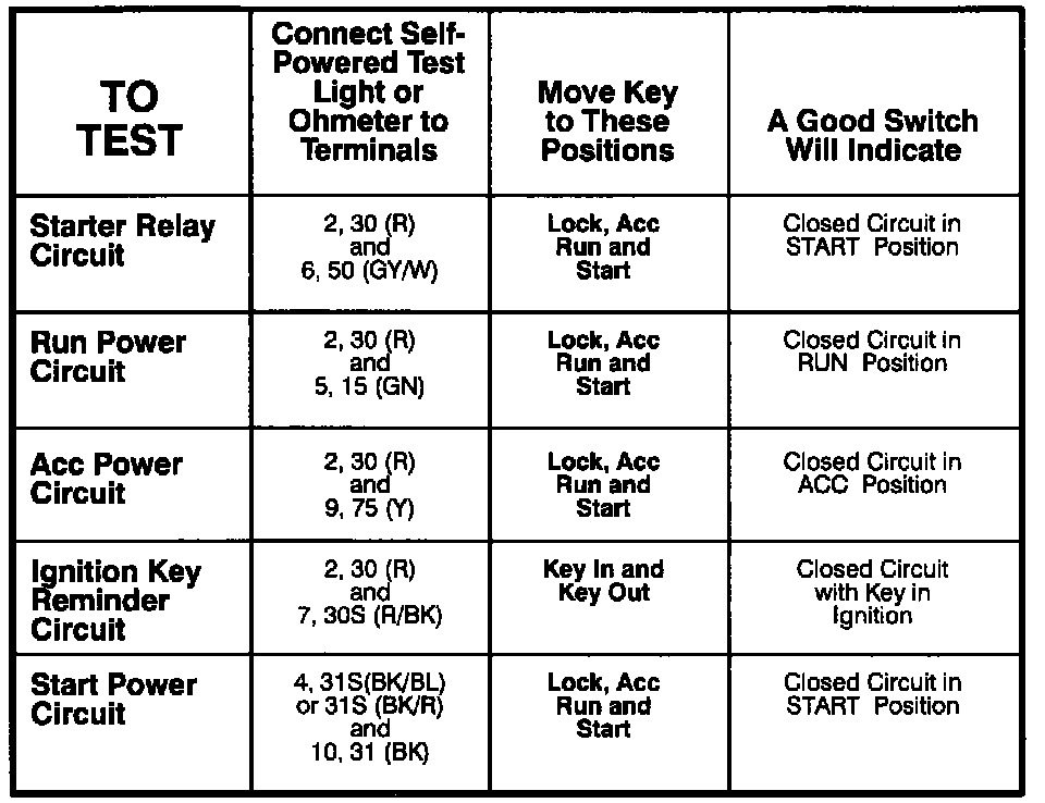 Ignition Switch: Testing and Inspection