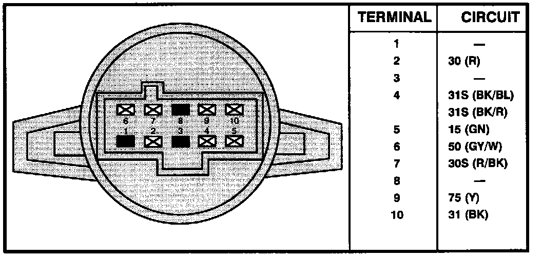 Ignition Switch - Terminal Locations: