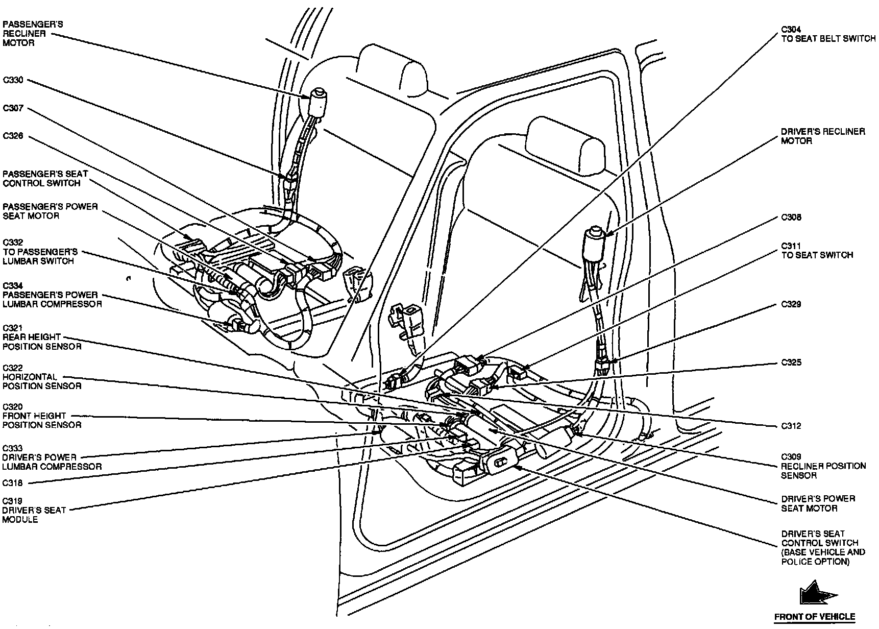 The Driver's Seat Module is located below the driver's seat.