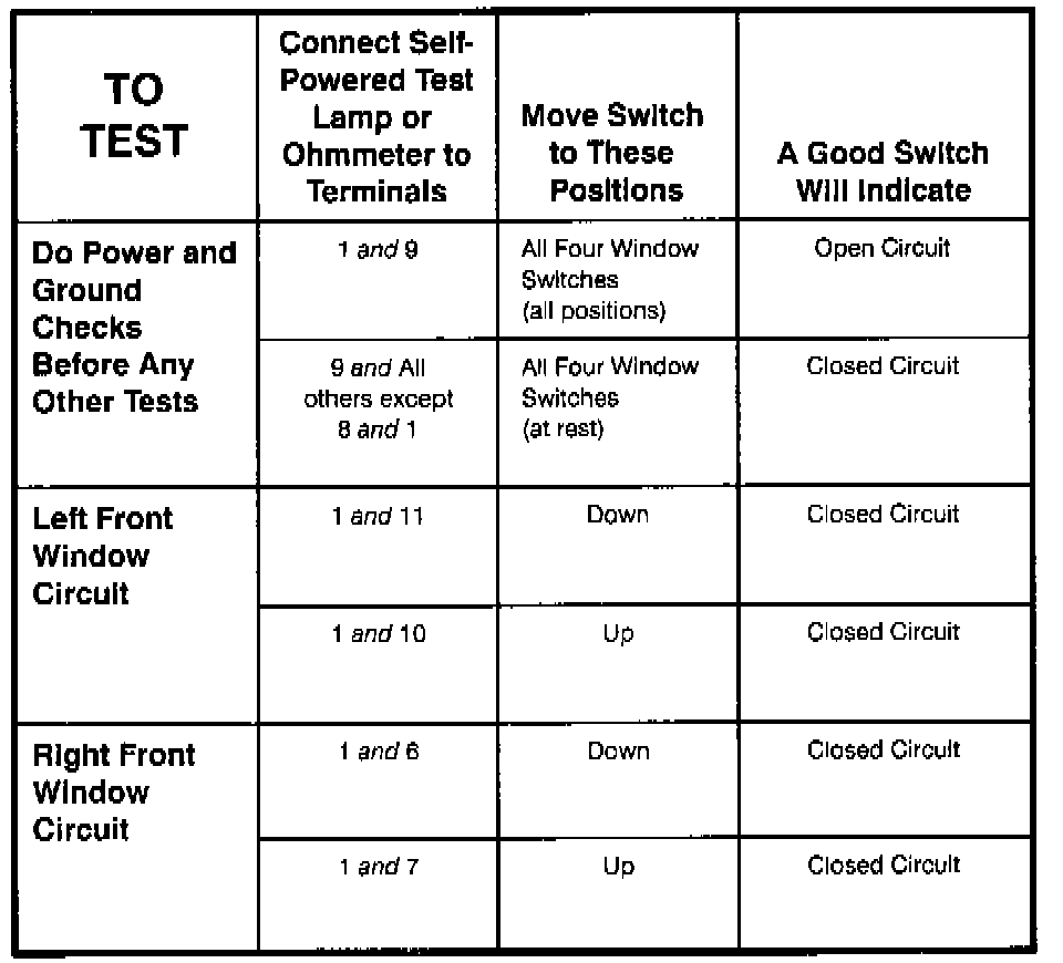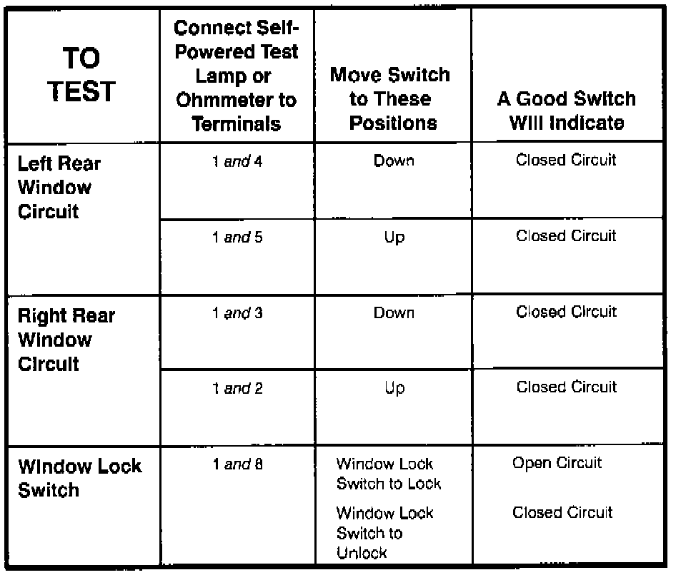 Master Window Control Switch - Component Testing Procedure (Part 2 Of 2):