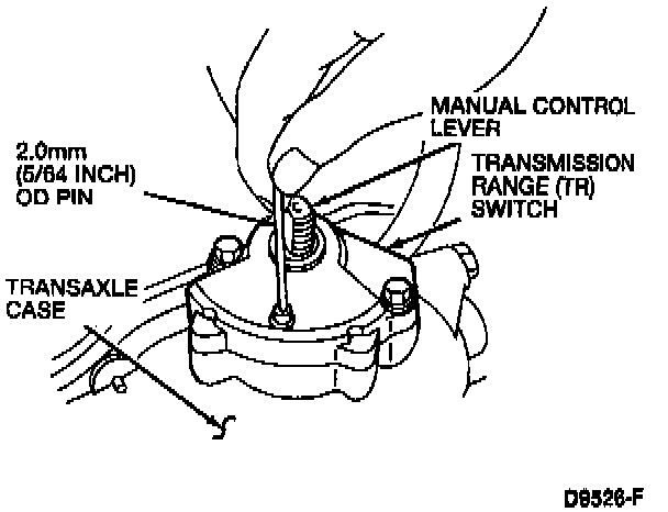8. Tighten the TR switch bolts to 8-11 Nm (69-95 lb in). Remove the pin.
