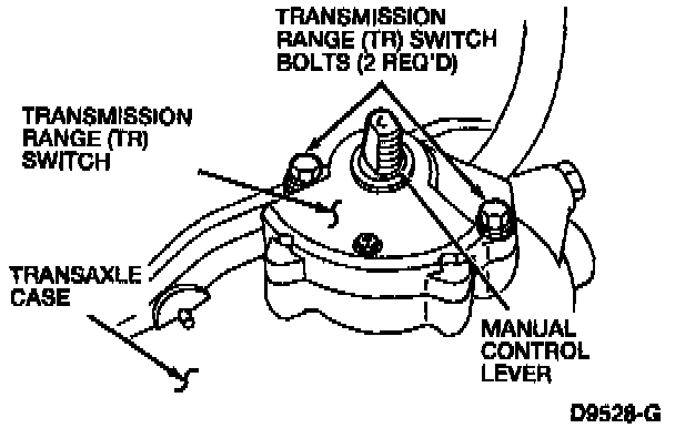 7. Remove the two retaining bolts securing the Transmission Range (TR) switch.