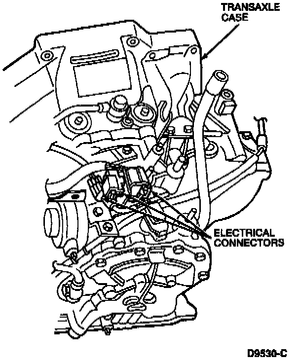 4. Connect the three solenoid electrical connectors located on the top and the one solenoid electrical connector located on the side of the transaxle case.