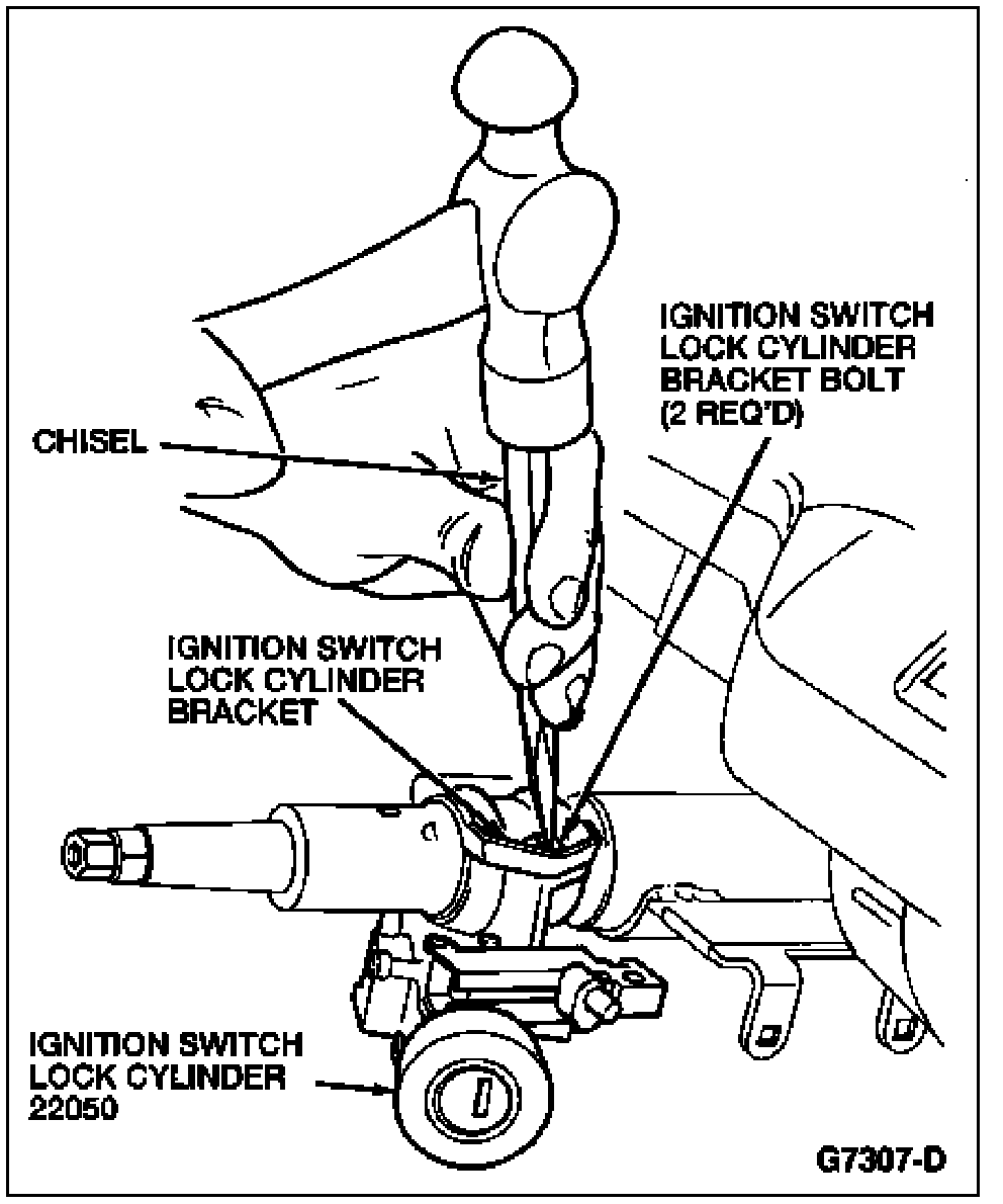 3. Tighten the ignition switch lock cylinder bracket bolts until the bolt heads break off.