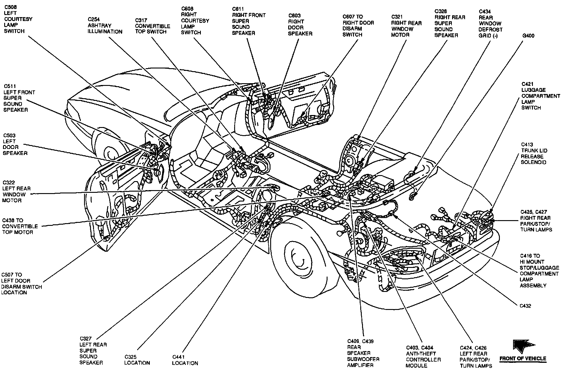 The Anti-Theft Controller Module is located at the LH rear of the trunk, behind trim panel.