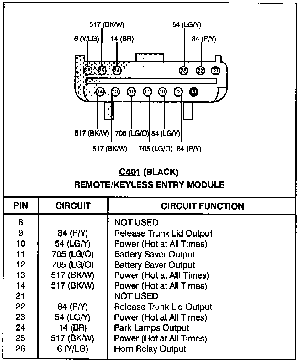 Remote/Keyless Entry Module (C401):