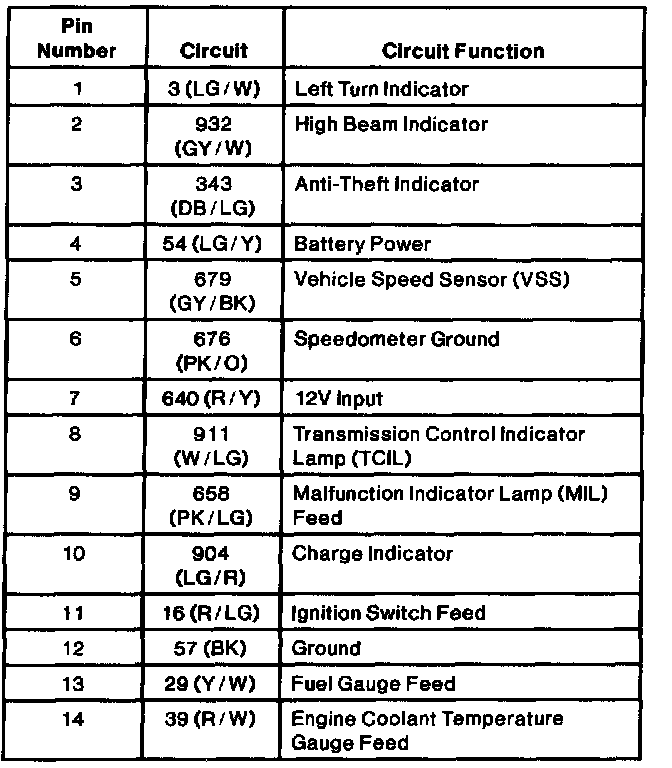 Instrument Cluster Connector C1 Part 3 Of 3: