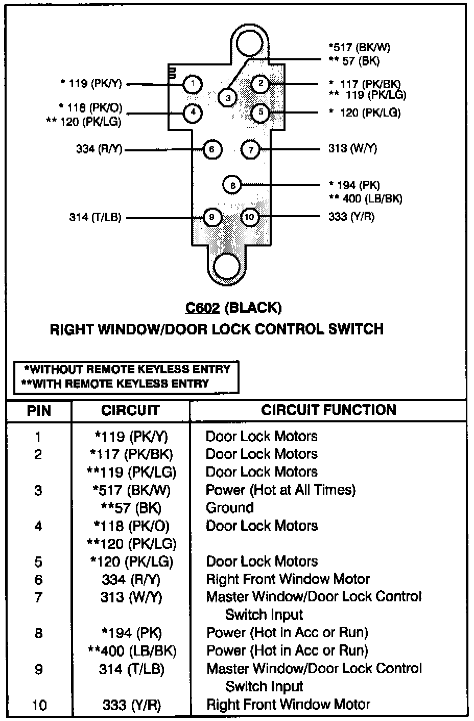 Right Window/Door Lock Control Switch: