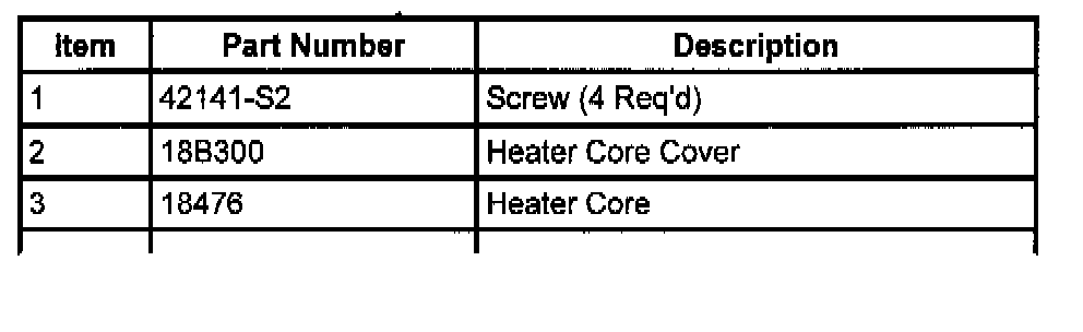 2. Remove four heater core cover retaining screws. Remove heater core cover (18B300) from A/C evaporator housing (19850).