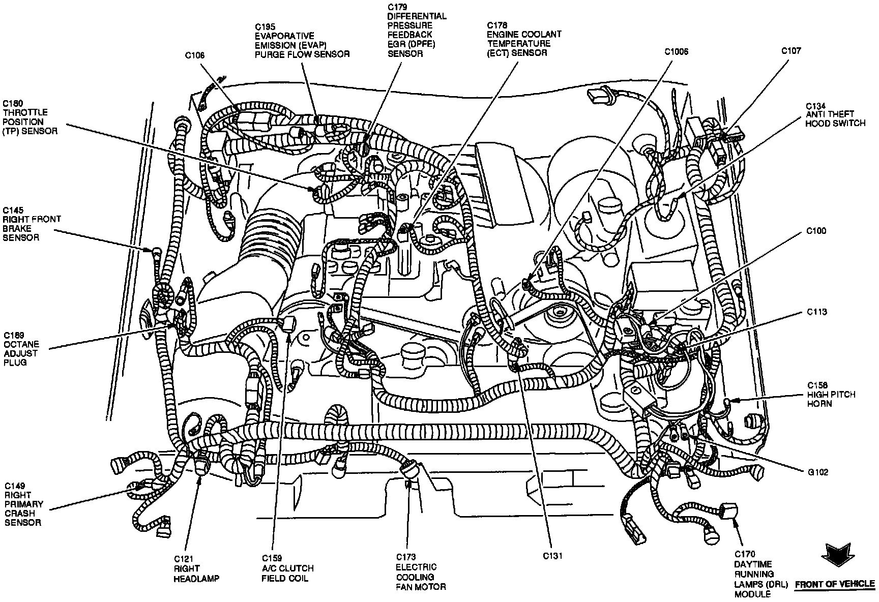 The Engine Coolant Temperature Sensor is located at the top front of the engine, behind ignition coil.