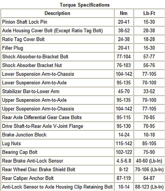 Torque Specifications