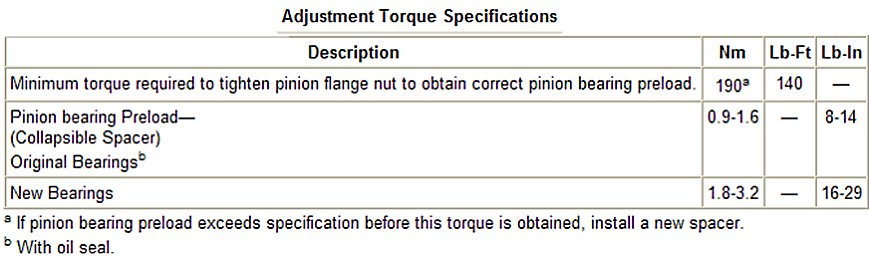 Adjustment Torque Specifications