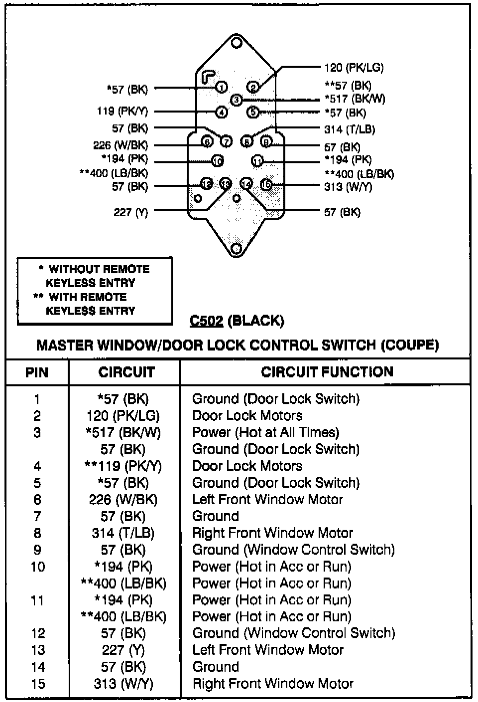 Master Window/Door Lock Control Switch (Coupe):