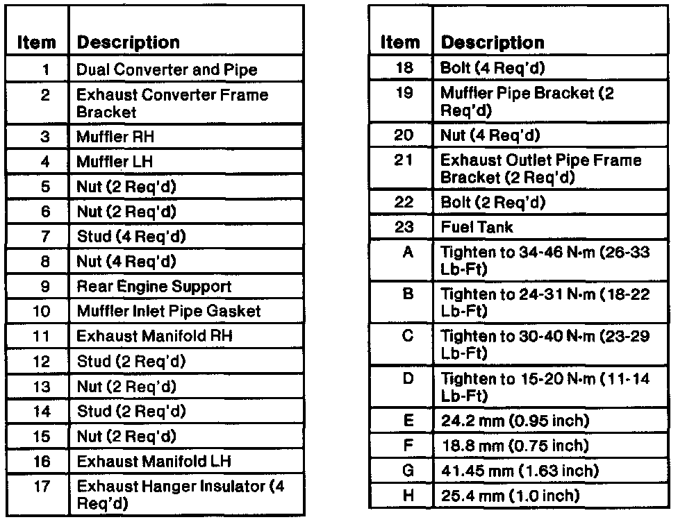 a. Tighten dual converter and pipe-to-exhaust manifold nuts to 34-46 Nm (25-34 lb ft).